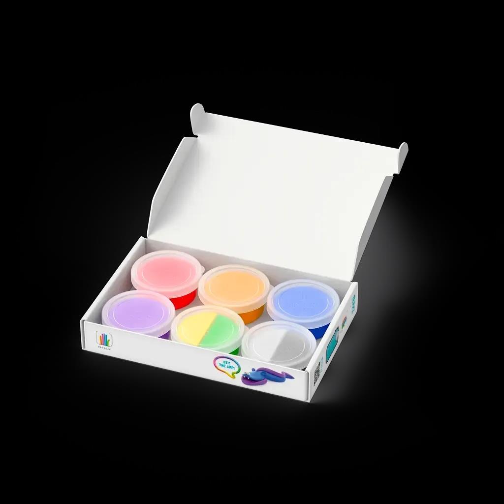 Kutu çeşitli renklerde 6 kutu kil ve uygulamadaki 3 figüre erişim için gerekli kodu içerir.