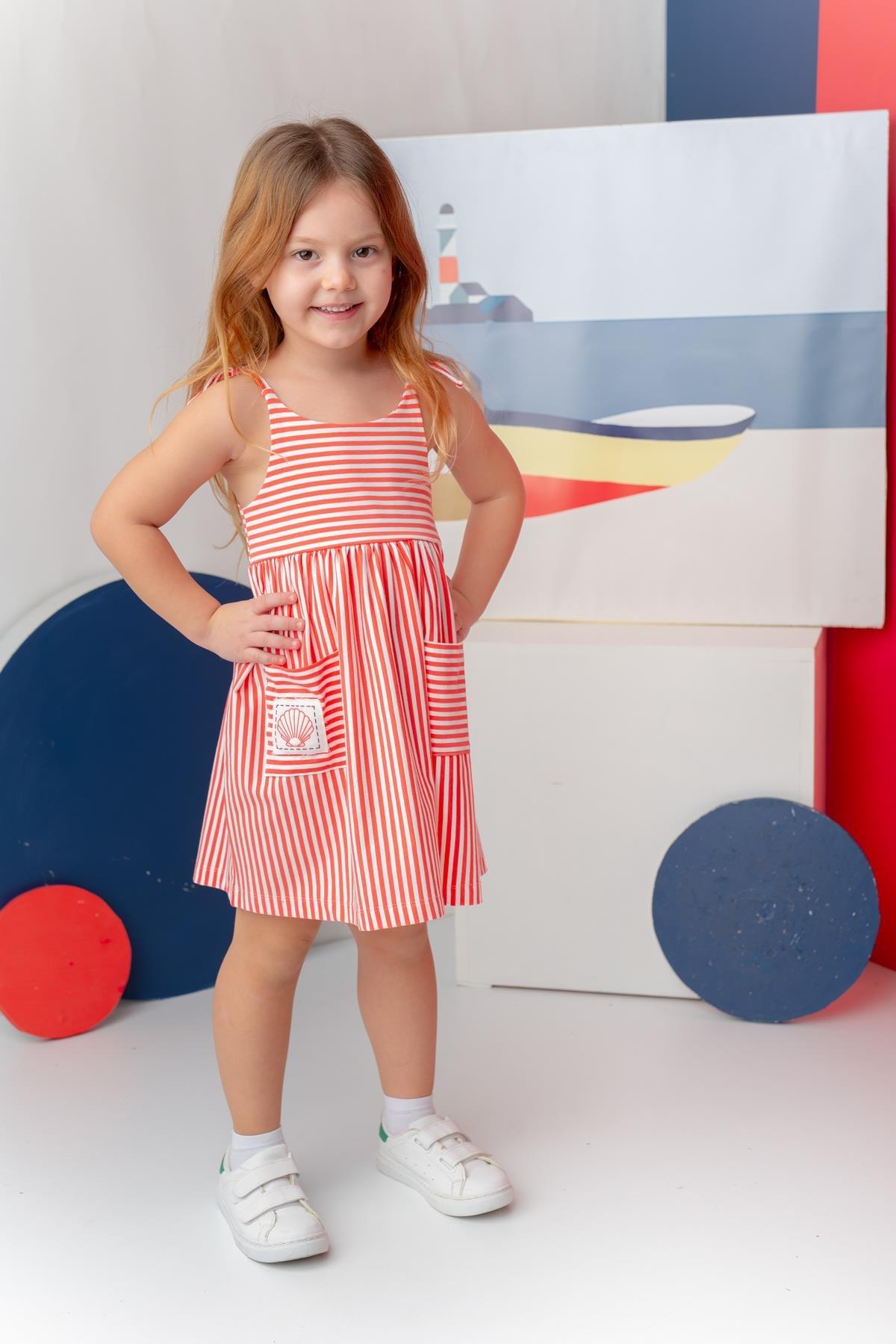 Kız Çocuk Askılı Coral Çizgili Penye Elbise