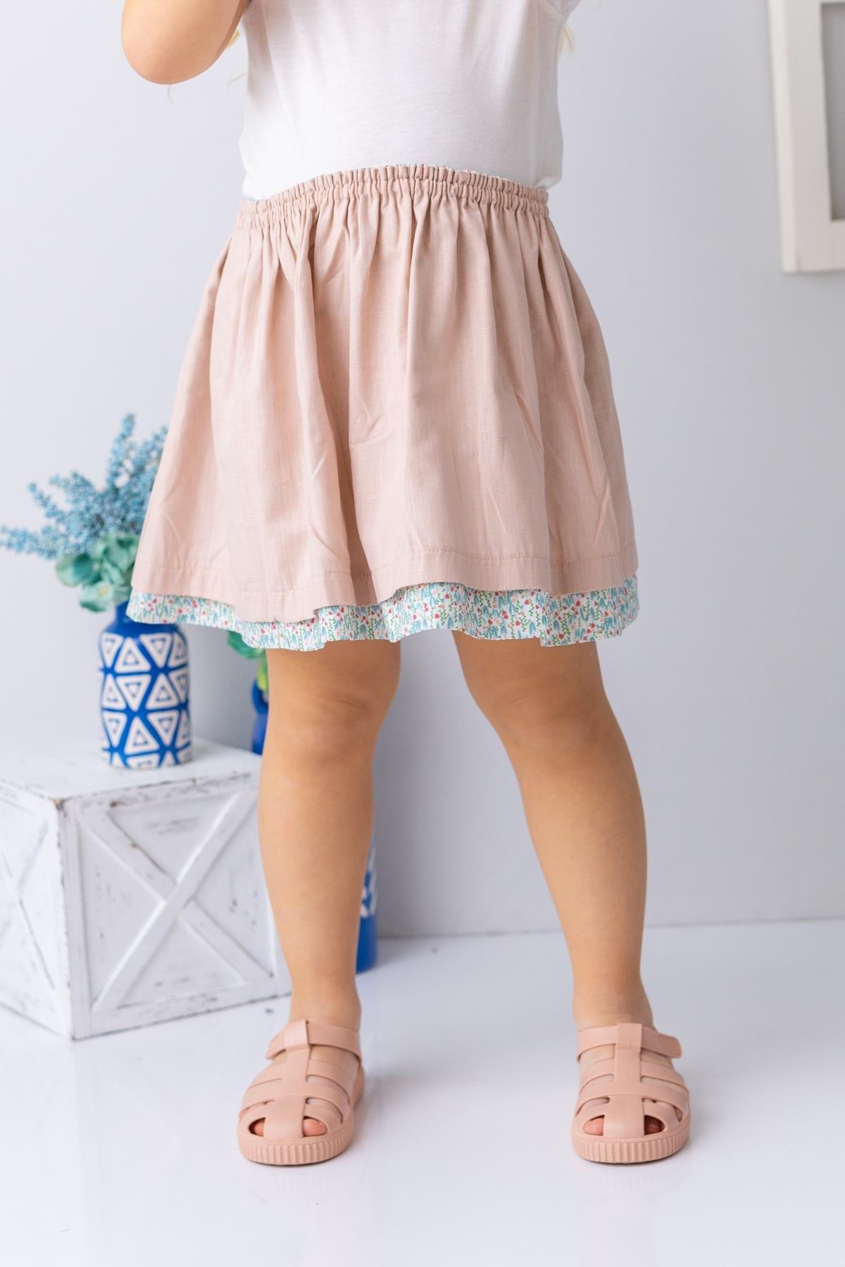 Kız Çocuk Çift Taraflı Çiçek Desenli Etek