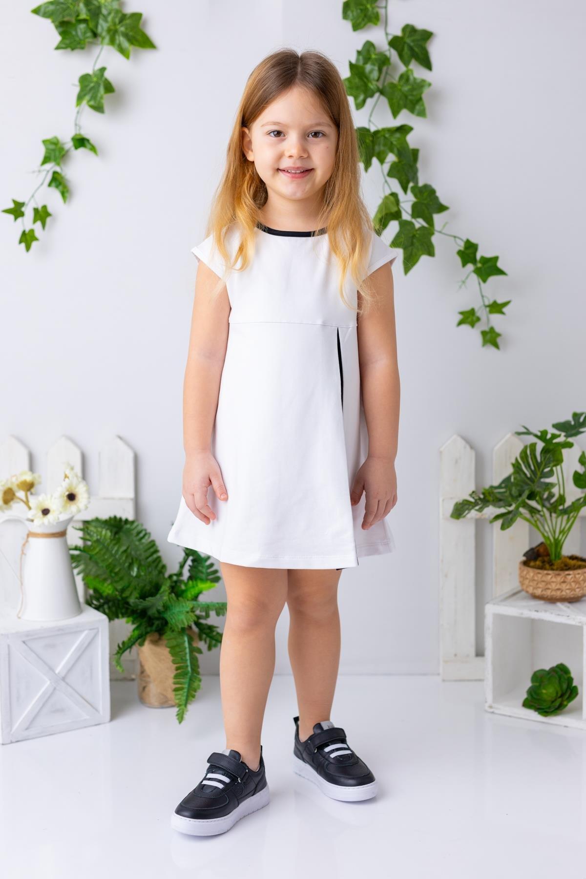 Kız Çocuk Garnili Beyaz Kolsuz Elbise