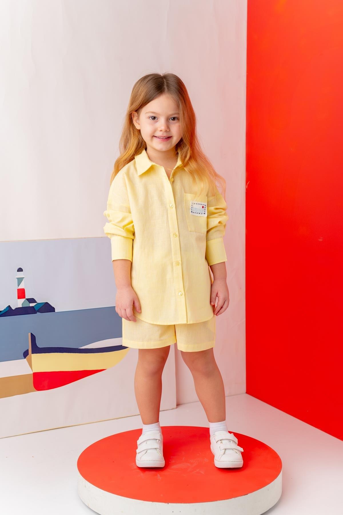 Kız Çocuk Gömlek Sarı Şort Takım