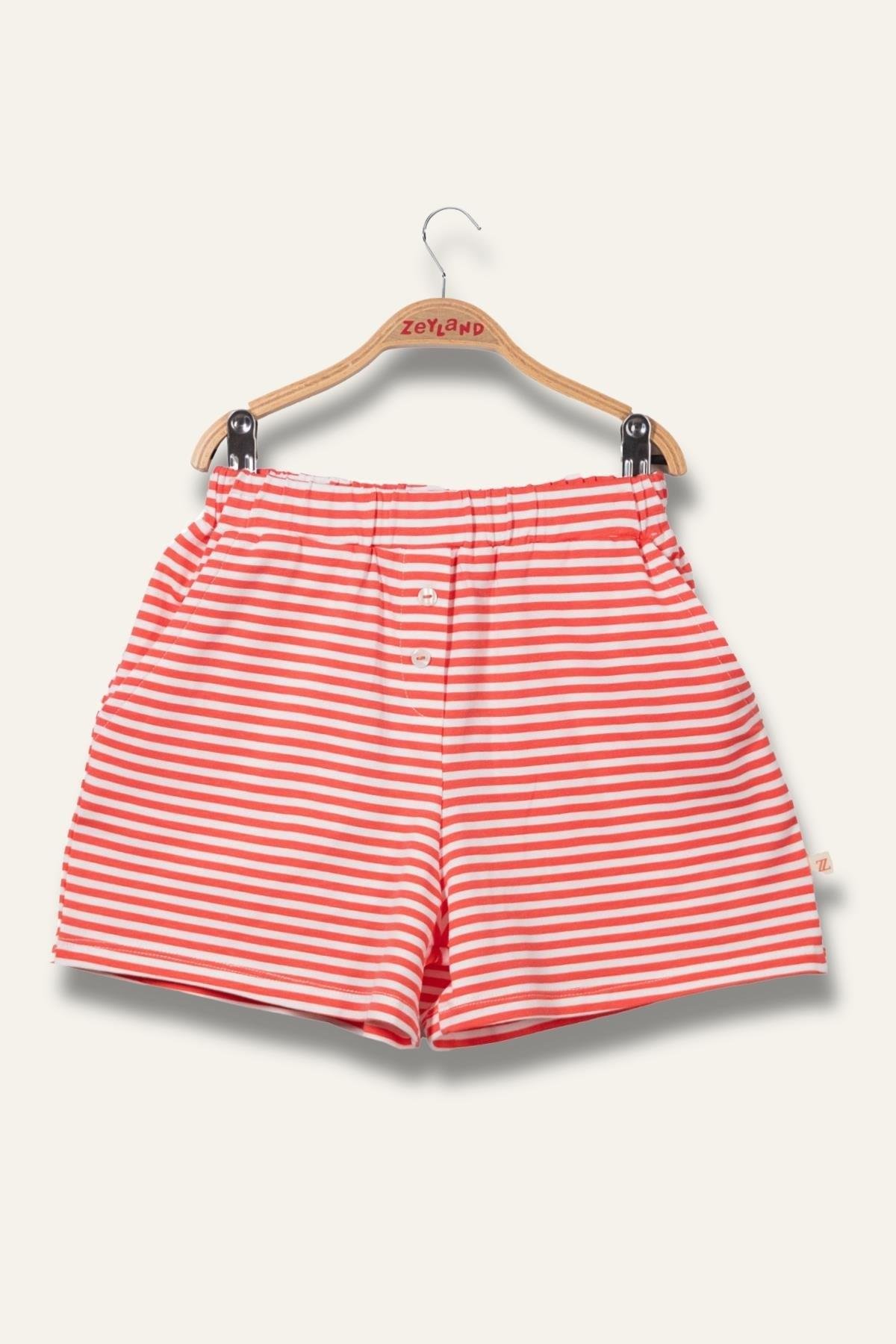 Kız Çocuk Penye Coral Çizgili Kısa Şort