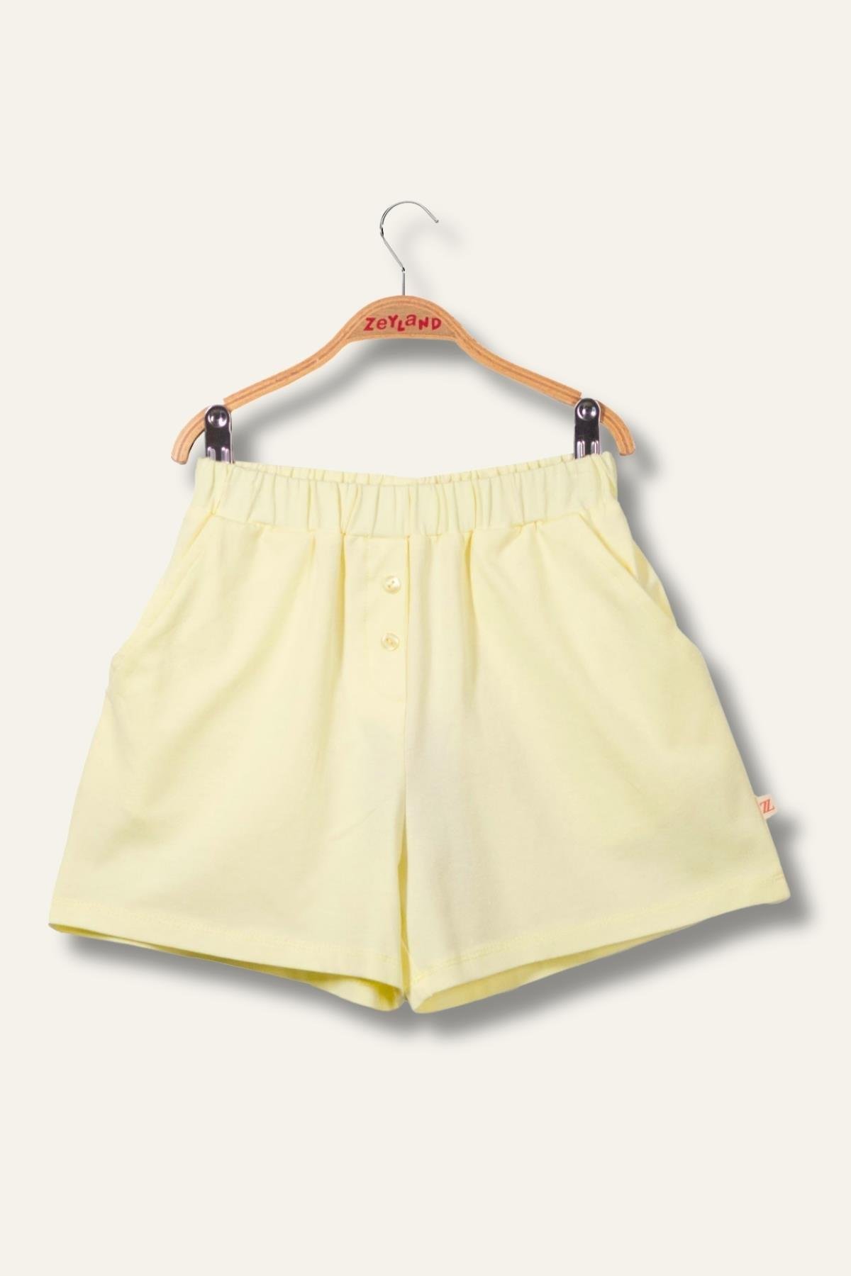 Kız Çocuk Penye Sarı Kısa Şort